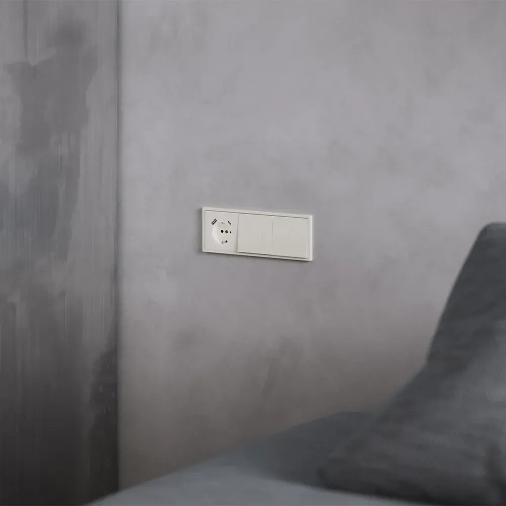 Выключатель полностью совместим с пластиковыми и стеклянными рамками той же серии и гармонично вписывается в любую композицию из розеток, выключателей и других устройств VOLTUM S70.